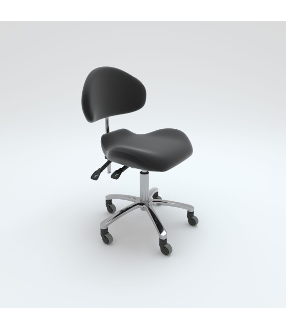 De Torres Comfort is voorzien van een comfortabele platte zitting en rugleuning. Zowel de hoogte als de rugleuning is verstelbaar. Hierdoor en door de kiepfunctie kan de tabouret in iedere gewenst positie worden gezet.